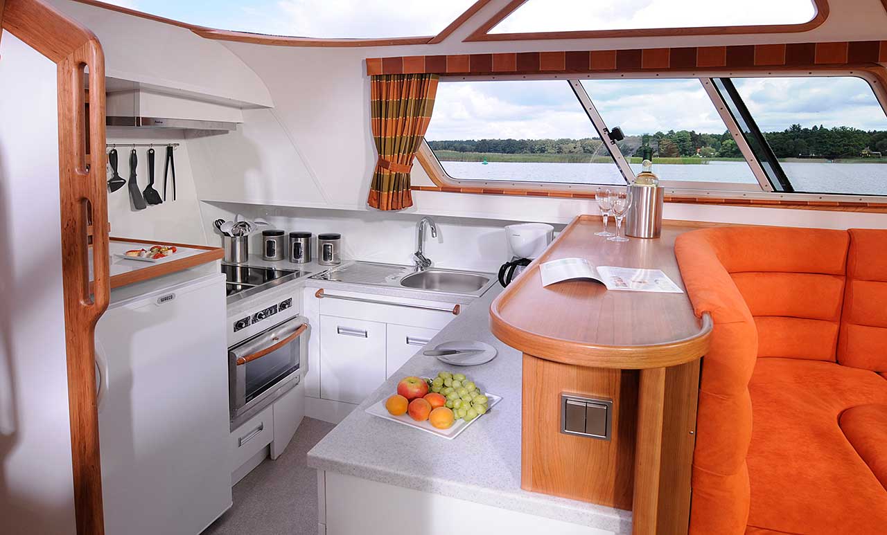 Jej przestronne wnętrze zapewnia bardzo przyjemną i obszerną część dzienną. Model odpowiedni do żeglugi po jeziorach.
